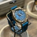 ベルトもブルー色を使用することで、文字盤とベルトが一体感を感じさせる腕時計となっています。