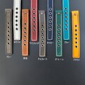 ベルトはイタリア牛革の茶色、ホワイト、グレー、ブラックのほか、手作業で染めたネイビー、ブラウン、ブルー、ワインレッド、グリーン、チョコレートのベルトをご用意しております。写真以外のベルト色をご希望の際は、「ベルト色の選択」からお選びください。