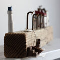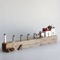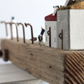 流木、ねじ・釘(赤錆加工)、ホワイトウッド(欧州スプルース、ドイツトウヒなど)、ステイン、ペンキ等で製作。ヤスリでダメージ感を演出しています。「潮騒とカモメの鳴き声、風の音」を感じていただければ幸いです。