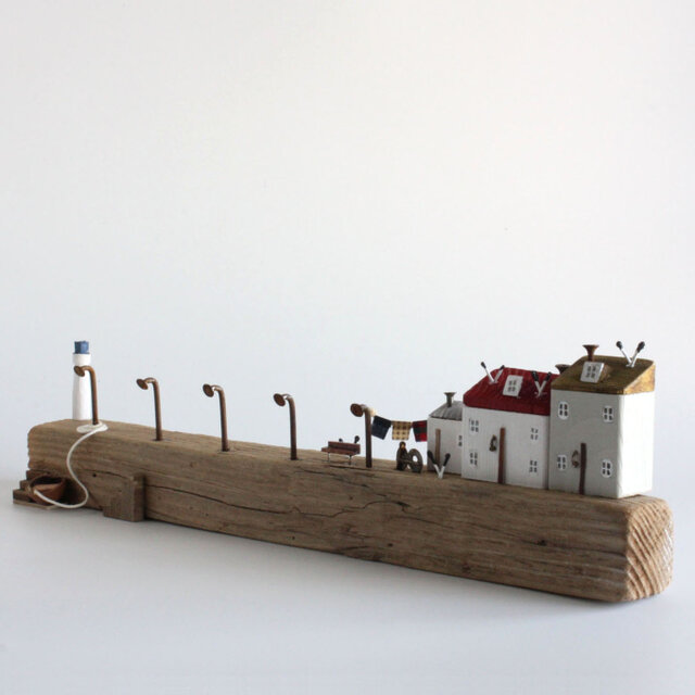 先ほど受け取りました。 流木の風合い、カモメ、岬の先にある白い壁の一軒家…ノスタルジーに誘われ.風や波音が静かに聴こえてきそうな雰囲気のある作品です。早速、リビングの棚に飾りました。 ありがとうございました!