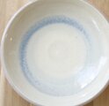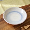 淡い生成色の中に描き出された紺の柔らかな渦模様が面白く、お皿の真ん中にお料理をこんもりと盛り付けていただくと、模様との調和をよりお楽しみいただけます。