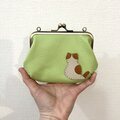 持ち手の付いた、小さなバッグみたいながま口ポーチです。