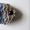 切りっぱなしの布を一枚一枚、手縫いで縫い付けて鱗を表現しました。