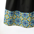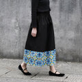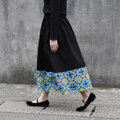 上品でベーシックな黒のチノクロスとカンガを合わせたことにより、独特の存在感のあるスカートに仕上がっています。