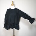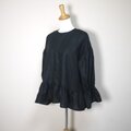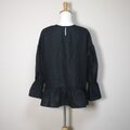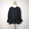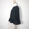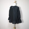 カラーリネン◆アンダーフリルのキャンディブラウス◆黒◆フリーサイズ(中厚、リネン100%)