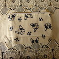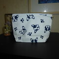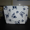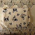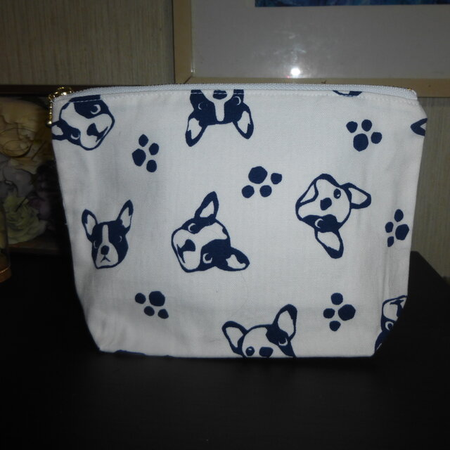 白地にフレンチブルドッグの顔柄のオックス地の台形型ポーチです。