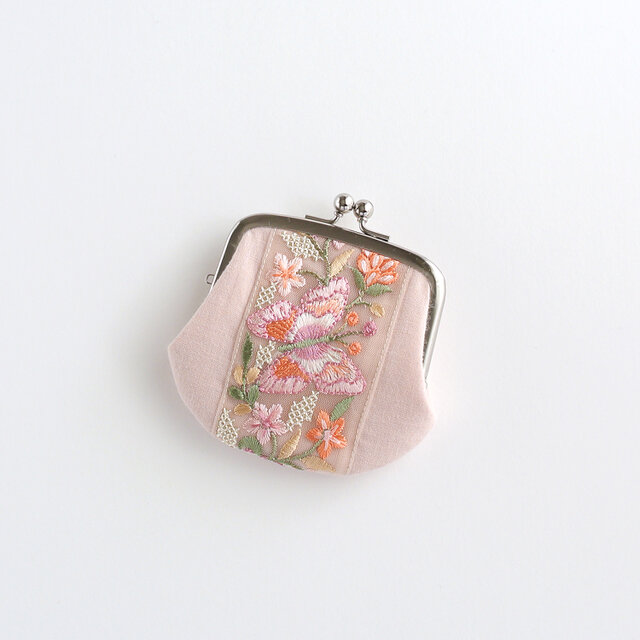 インド刺繍リボンをあしらった手のひらサイズのがま口ポーチ