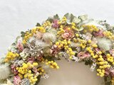 輝くようなイエローのミモザを沢山あしらったリースです。