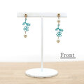 【小さな花のアシンメトリー・ピアス】イヤリング ピーコックグリーン プチギフト プレゼント