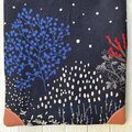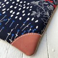 ネイビー地に植物とドットが繊細に描かれてブルーがアクセントになっています。