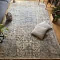 大判160×265グレイ×クリーム メダリオン トルコヴィンテージラグ