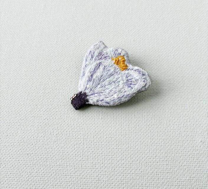 雨上がりのクロッカス/きらきらと輝くお花の刺繍ブローチ