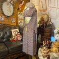 【着物 リメイク ロング ワンピース ドレス 洗える 化繊 名古屋帯ベルト 和洋折衷 レトロ 古着 ハンドメイド 深みのある藤色の地に、細やかに描かれた草花や幻想的な鳥たちが舞う、まるでアンティークの絵画のような一着。 KW-896】
