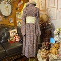 着物 リメイク ロング ワンピース ドレス 洗える 化繊 名古屋帯ベルト 和洋折衷 レトロ 古着 ハンドメイド KW-896