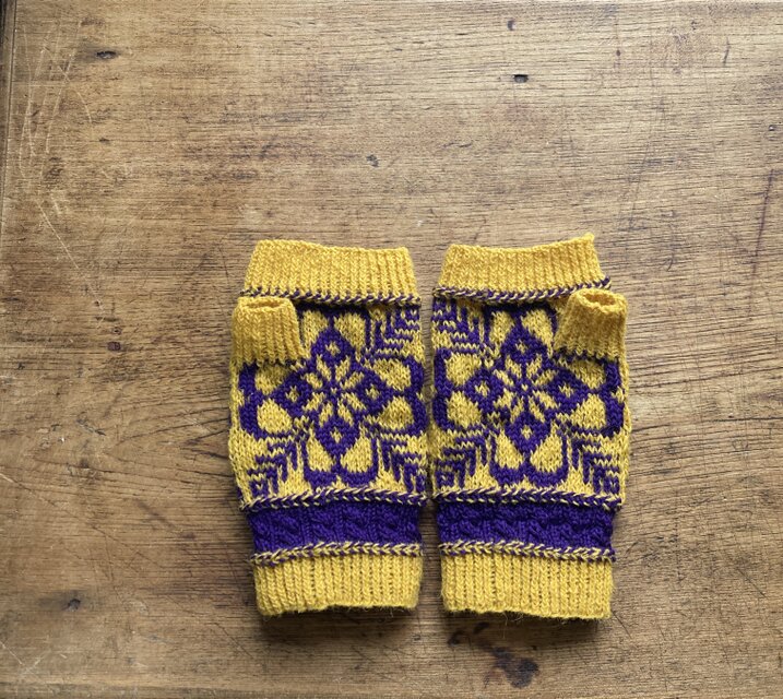 様々な国のモチーフ柄に感化され編んだハンドウォーマーです。