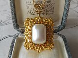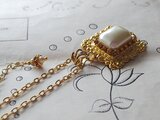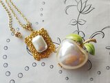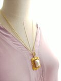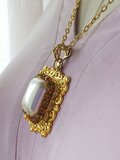 ヴィンテージGlassパールとトパーズのラインストーン、真鍮製台座で作られた美しいトップを用いてお作りしましたネックレスです。