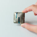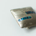 四角い桂の木に錫粉、螺鈿、錫箔で加飾したブローチです。