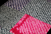 数種類の絞り正絹生地をキリバミで帯に加工しました。