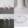 ピンクゴールドカラーの金具や、クリスタルガラスパールが、優雅で上品な印象を更にプラスした、大人の方にも楽しんで頂けるピンクカラーのアクセサリーです。