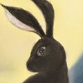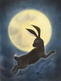 夜空に浮かぶ大きな満月、その光を浴びながら飛び跳ねる黒兎