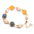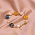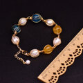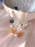 【手作りアクセサリー】天然石ブレスレット | シトリン × ブルーアパタイト × 淡水パール | 18K金メッキ