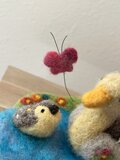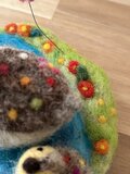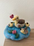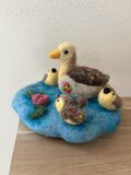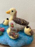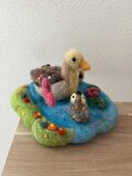 池の土台はしっかり固めて作り、カモはふんわり見えるよう形作っています。