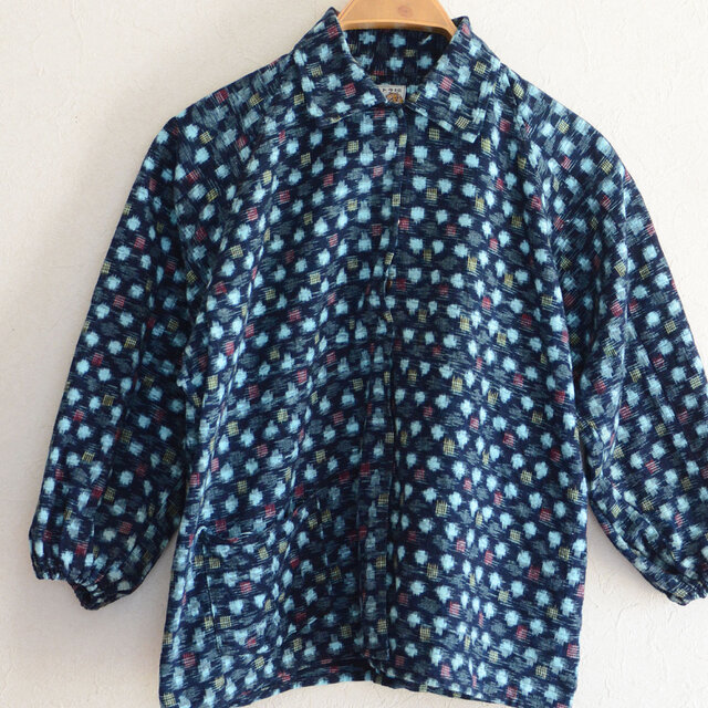 絣 古布 木綿 シャツ ブラウス ジャパンヴィンテージ ハンドメイド リメイク素材