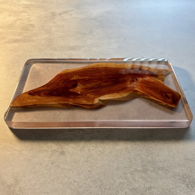 美しい木目を持つ木材と洗練された輝きを放つレジンで織りなすウッドレジン製の飾り台です。小さな工房で丁寧に仕上げた一点物になります。