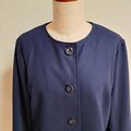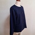 ウール ノーカラージャケット【総裏付き】 ネイビー 紺 Lサイズ