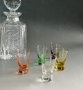 緑 赤 黄色 紫 透明と5色が揃ったショットグラスです。