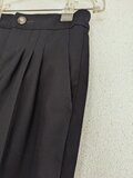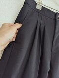 タックを前面に効かせたワイドパンツのシルエットに、後ろはスッキリと見える形にしました。