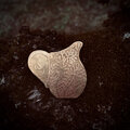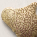 真鍮の塊に銅版画の技法でほどこした凹凸のあるデザインが特徴です。
