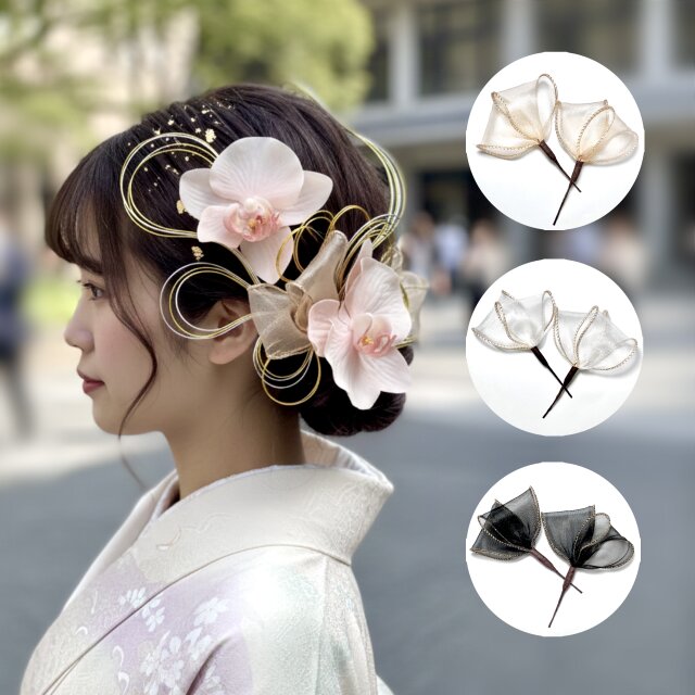 成人式 結婚式 卒業式 振袖 袴 色打掛 白無垢 和装 前撮り 髪飾り ヘッドドレス リボンパーツ2本