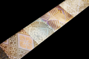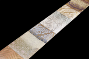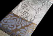 帯の生地を切り取り様々な模様のものをつなげ合わせひとつの作品にしたものです。