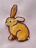 丸小、特小、極小ビーズ等を使用しました。茶色のグラデーションで作ったウサギのブローチです。横向きの姿がかわいいです。