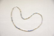 スケッチブックに透明水彩で色をつけたようなやわらかな色彩のネックレスです。シルク糸でひとつひとつ結び目を作りながらつなぎました。長さはゆったりめのマチネーサイズになっています。カジュアルに着けられるので昼間のおでかけにぴったりです。