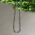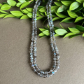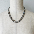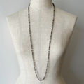 ラブラドレッセンスが美しいラブラドライトをメインに使ったロングネックレス。グレーのラブラドライトからブルーの光が輝きます。