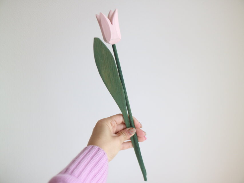 スウェーデンで見つけた木製チューリップ &葉っぱ / 薄ピンク