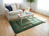 値下げしました】ペルシャ ギャッベ ソファー前 ハーフラグ 140x96cm 緑色 ザクロの木 RJ6275