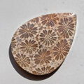 マーガレットのような花模様がくっきりと美しい、フォッシルコーラルのしずく形ルースです。