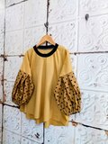 上質マスタードカラーカットソー&ドットチュールパフスリーブブラウス