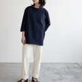 七分袖カットソー/バスクシャツ/evening blue
