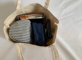 小さなトートバッグはお散歩やちょっとそこまで・・・のお買い物などに便利です。