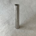 錫の光沢を存分に引き出すため、彫刻刀仕上げといたしました。従来の槌目加工(最後の写真を参照ください)も味わいがありますが、この仕上げが錫の魅力を伝えます。錫は錆びなく、黒ずむこともありませんので光沢は失いません。くすみ、汚れが気になるようでしたら、歯磨き粉等で磨いていただければすぐに輝きを取り戻します。また、錫の器は殺菌作用の為、切り花が長持ちします。