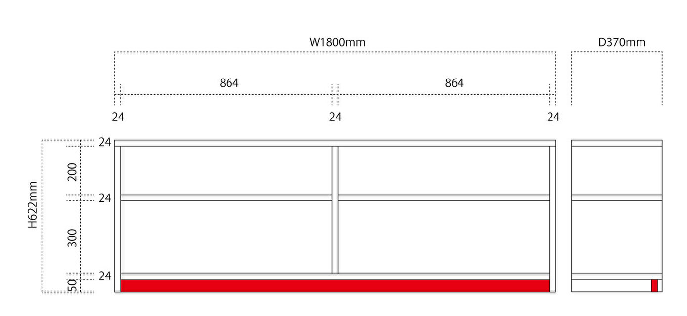 ・H622*W1800*D370mm