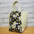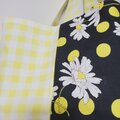 マーガレット柄×ギンガムチェック柄で4枚はぎのころっとした大きめバッグを作りました。