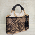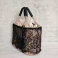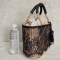 カジュアルになりがちなカゴバッグを、チュールレースでドレスアップ。