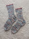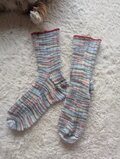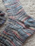 ちなみに竹串か?!ってくらい細い針で編んでるので意外と薄いです。普通の靴下と同じように履けますよ