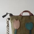 バッグ本体には草色の撥水性ナイロン生地、チューリップは本革を使用。