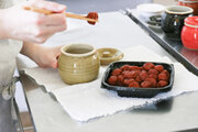 買ってきたお漬物や梅干しを甕へ詰め替えて冷蔵庫へ入れておけば、食事の時は冷蔵庫から食卓へ運ぶだけ。